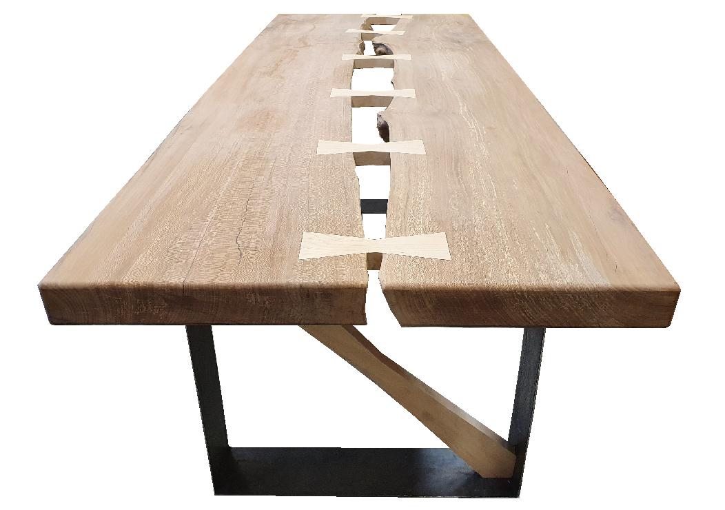 London Plane live edge table with Maple bowties